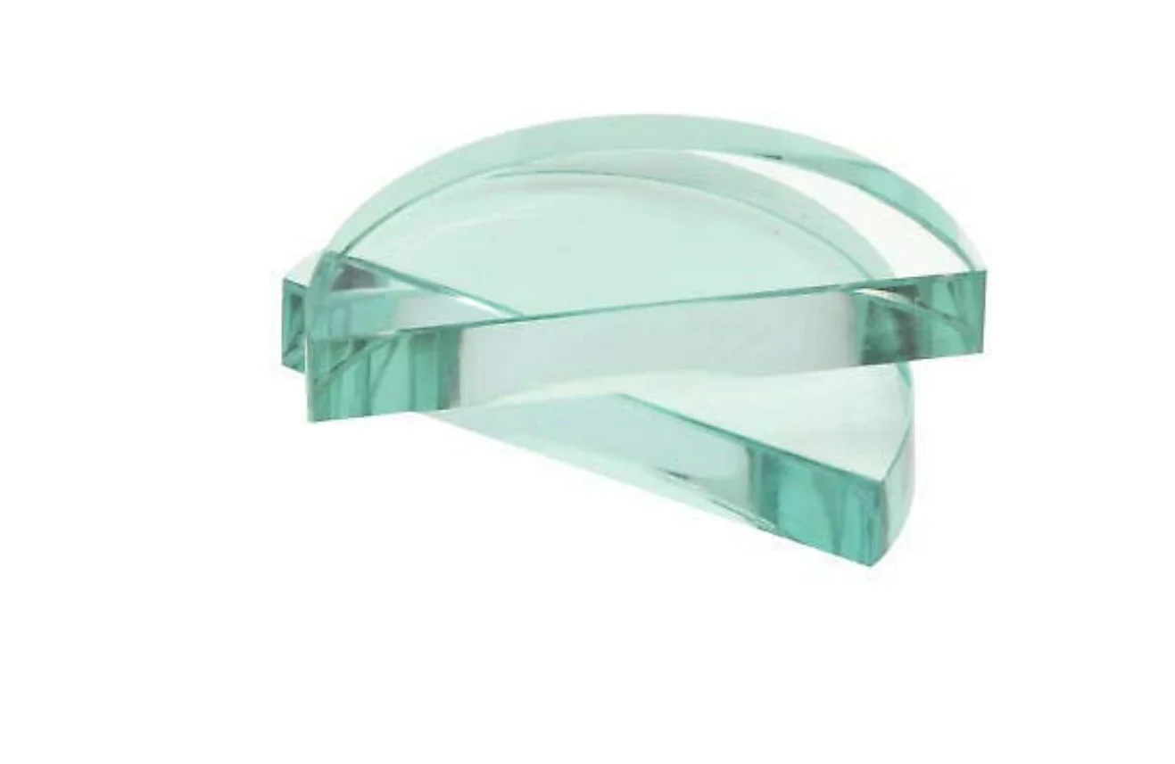 Semi-circular, flat on one side and curved on the other